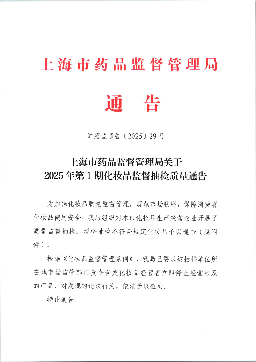 为加强化妆品质量监督管理,规范市场秩序,保障消费者化妆品使用安全,我局组织对本市化妆品生产经营企业开展了质量监督抽检。现将抽检不符合规定化妆品予以通告(见附件)。