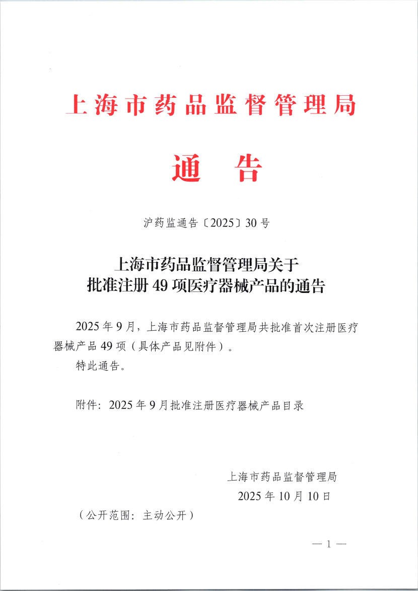 2025年9月,918博天堂-博天堂娱乐共批准首次注册医疗器械产品49项(具体产品见附件)。